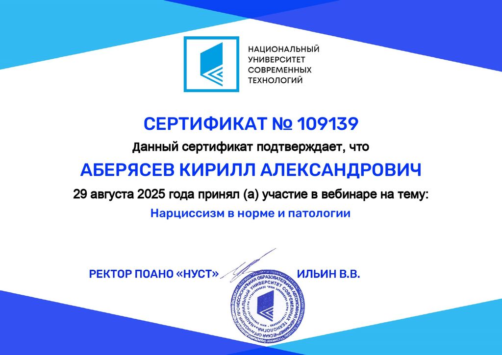 Диплом : "Психолог - психоаналитик" 1100 часов