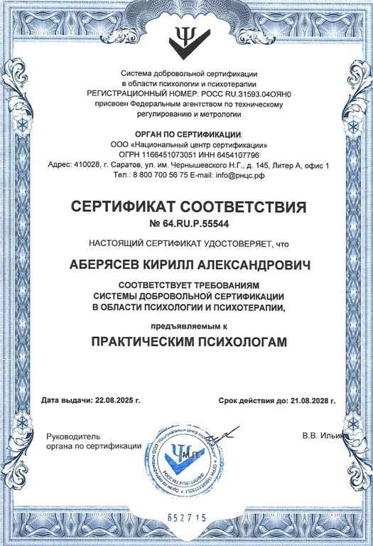ВНИМАНИЕ !!! Я НЕ ОКАЗЫВАЮ ЭКСТРЕННУЮ ПСИХОЛОГИЧЕСКУЮ ПОМОЩЬ (обращайтесь в экстренные службы психологической помощи), НЕ РАБОТАЮ С ЛИЦАМИ МЛАДШЕ 18 ЛЕТ (обращайтесь к детскому или подростковому психологу), А ТАК ЖЕ КАТЕГОРИЧЕСКИ НЕ РАБОТАЮ С КЛИЕНТАМИ С СУИЦИДАЛЬНЫМ ПОВЕДЕНИЕМ (обращайтесь к специалистам, которые специализируются по этим вопросам) !!!